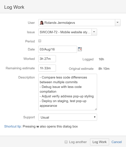 And if we overwork, or spend extra time helping others during lunch, surely we need to log all that time spent day. Otherwise Support will not know about its heroes and will not be able to reward them, or provide help to ease constant overworks.
