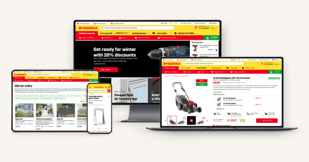 Byggmax is one of the largest DIY retailers in the Nordics, operating more than 160 physical stores across Sweden, Norway, Finland, and Denmark. Its eCommerce channel supports large product catalogs, country-specific pricing and stock, service bookings, and content-driven experiences such as DIY guides and build planners.