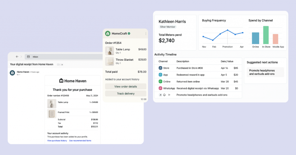 Digital receipts are becoming more than a convenience. They are key data points linking store activity to Customer Relationship Management (CRM) profiles and ensuring service continuity across all channels. This creates stronger trust, smoother support, and automated reactivation campaigns that feel timely and relevant.